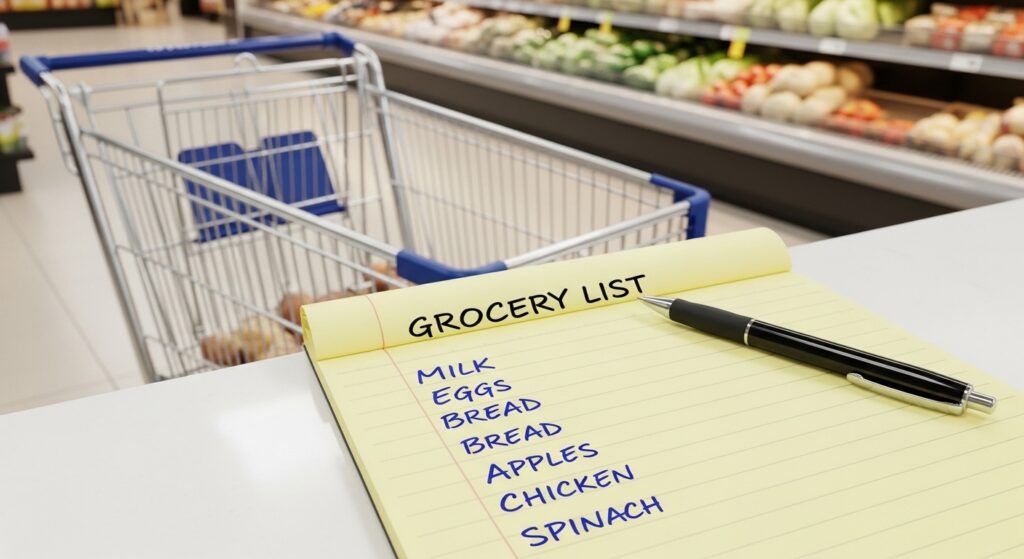A grocery list prevents impulse buying.